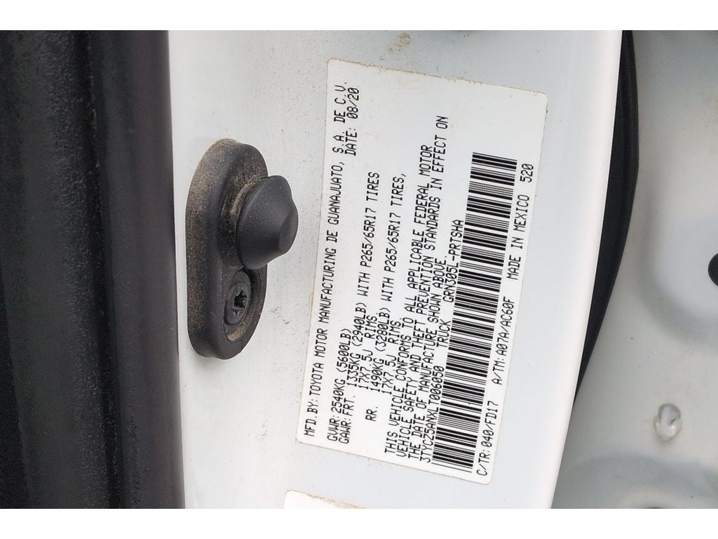 TRD Sport Package: 17" X 7.5J Machined Alloy Wheels; Smartphone and Mobile Device Charger; 120V/400W Deck Mounted AC Power; Power Sliding Rear Window with Privacy Glass; Smart Key with Push Button Start; Color-Keyed Overfenders; Engine Immobilizer; P265/65R17 AS Tires; Front Bucket Seats Phone Cable and Charge Package **Equipment listed is based on original vehicle build and subject to change. Please confirm the accuracy of the included equipment by calling the dealer prior to purchase.**